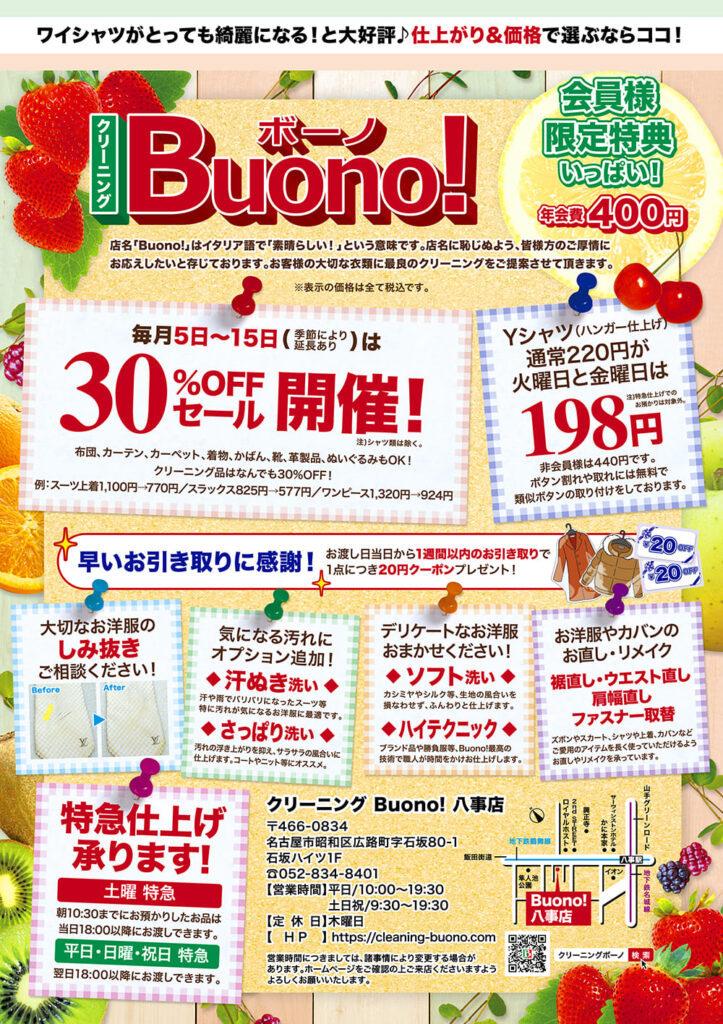 「クリーニングBuono!」は、定価がお値打ちとお客様よりお喜びのお声を頂戴しています。